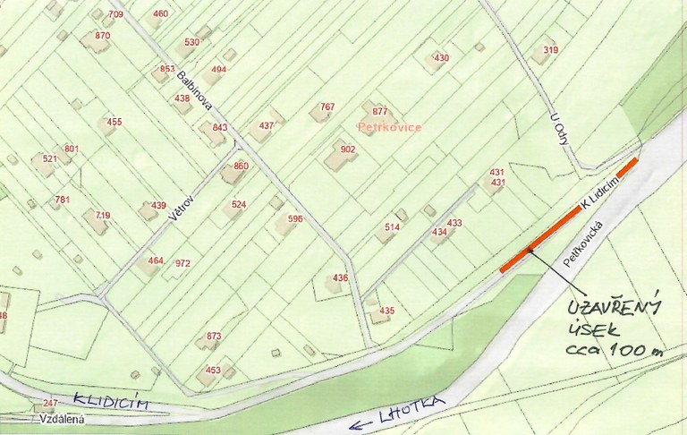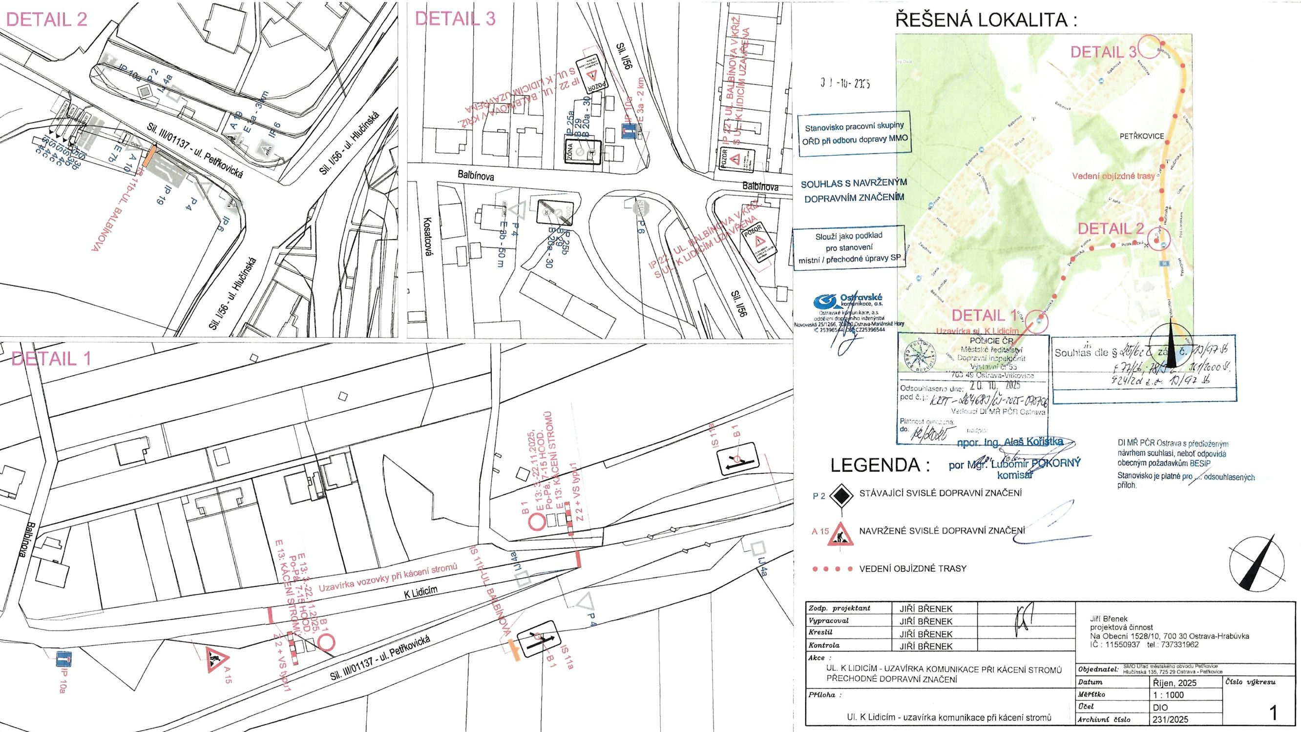 Z důvodu kácení části aleje na ulici K Lidicím bude tato ulice ve dnech 10.11. až 22.11. 2025 vždy v době od 7.00 do 15.00 hodin UZAVŘENA.