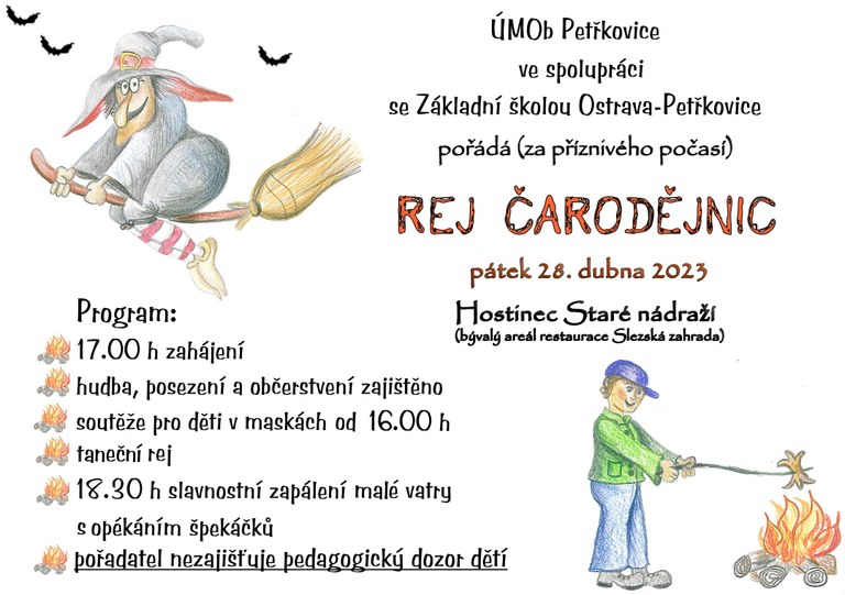 ÚMOb Petřkovice ve spolupráci se Základní školou Ostrava-Petřkovice pořádají v pátek 28. dubna 2023 REJ ČARODĚJNIC.